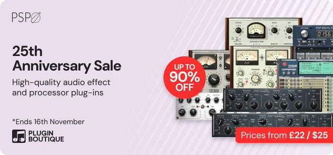 PSP Audioware 25th Anniversary Sale - Up To 90% OFF 🔥 Prices from $25! PSP Audioware has been developing high-quality audio effect and processor plug-ins for over 25 years. Buy now and save up to 90% for a limited time only in their 25th anniversary sale! (Disclosure: affiliate link) • Black Friday Plugin Deals 2025 - The Ultimate List 🚀 Discover the best Black Friday Plugin Deals 2025 in one ultimate list! Stay ahead with awesome offers, updated daily. Perfect for producers, musicians, and sound designers looking to save big this Black Friday season. • Free Plugin Of The Day The BaxterEQ is an incredible smooth shelving EQ. • Delay Time Calculator If you ever need a handy delay time calculator, we got you covered. |
